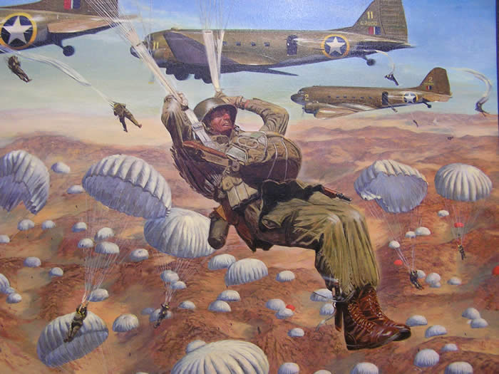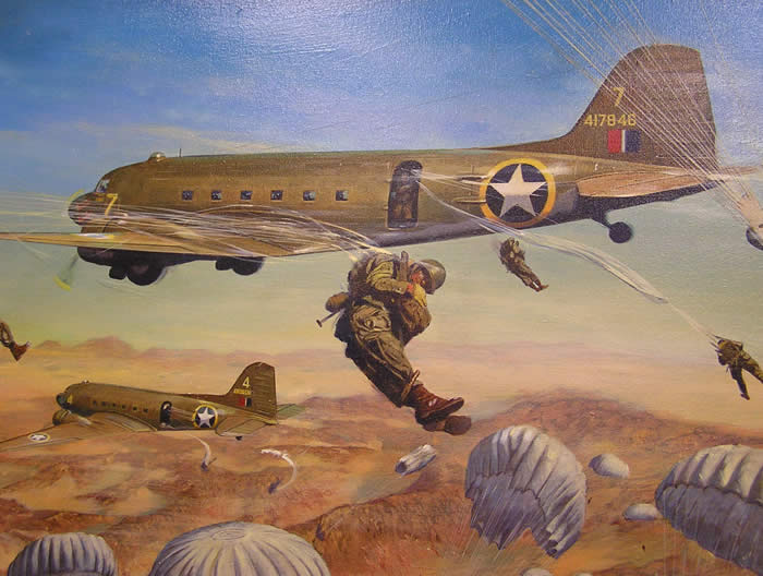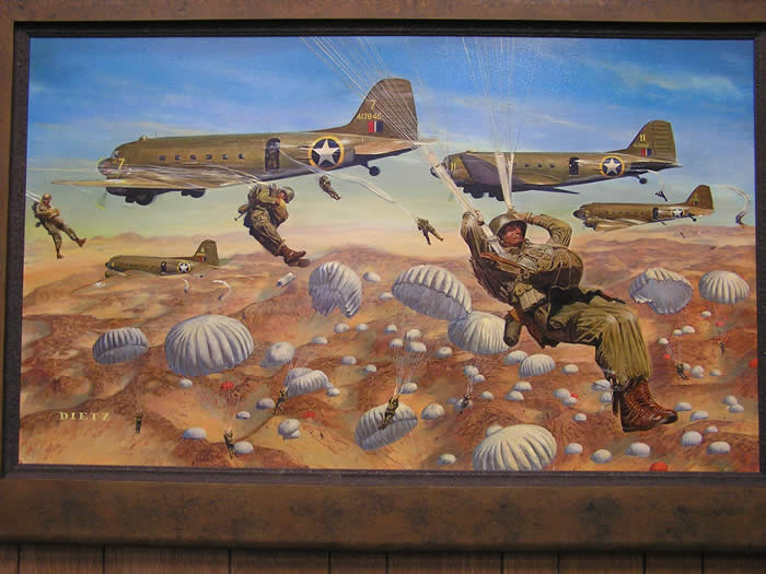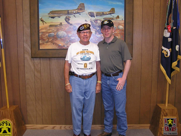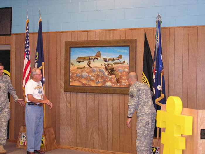 Veteran John DeVanie and LTC King with painting by James Dietz "You Have Your Orders" depicting the First American Combat Jump executed by 2/509th PIR into Oran, North Africa on November 8, 1942 in support of Operation Torch
