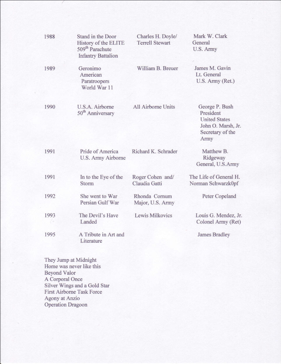 Mark C. Vlahos, Bill Kehler, Leading the Way to Victory. Simon & Schuster (simonandschuster.biz) 2022 - Note: book covers 60th Troop Carrier Group which includes details of their operations with the 509th PIR in North Africa on Americas first combat jump!