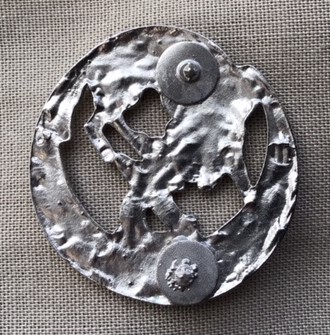 This is the modern stamped variation of the badge first authorized for wear during WWII. It is worn by Soldiers of the 509th today on the Class A uniform right breast pocket.