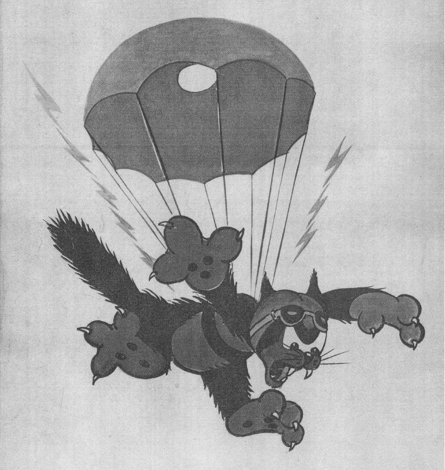 The wildcat parachute artwork found in the 503rd Parachute Battalion yearbook published February 1942.