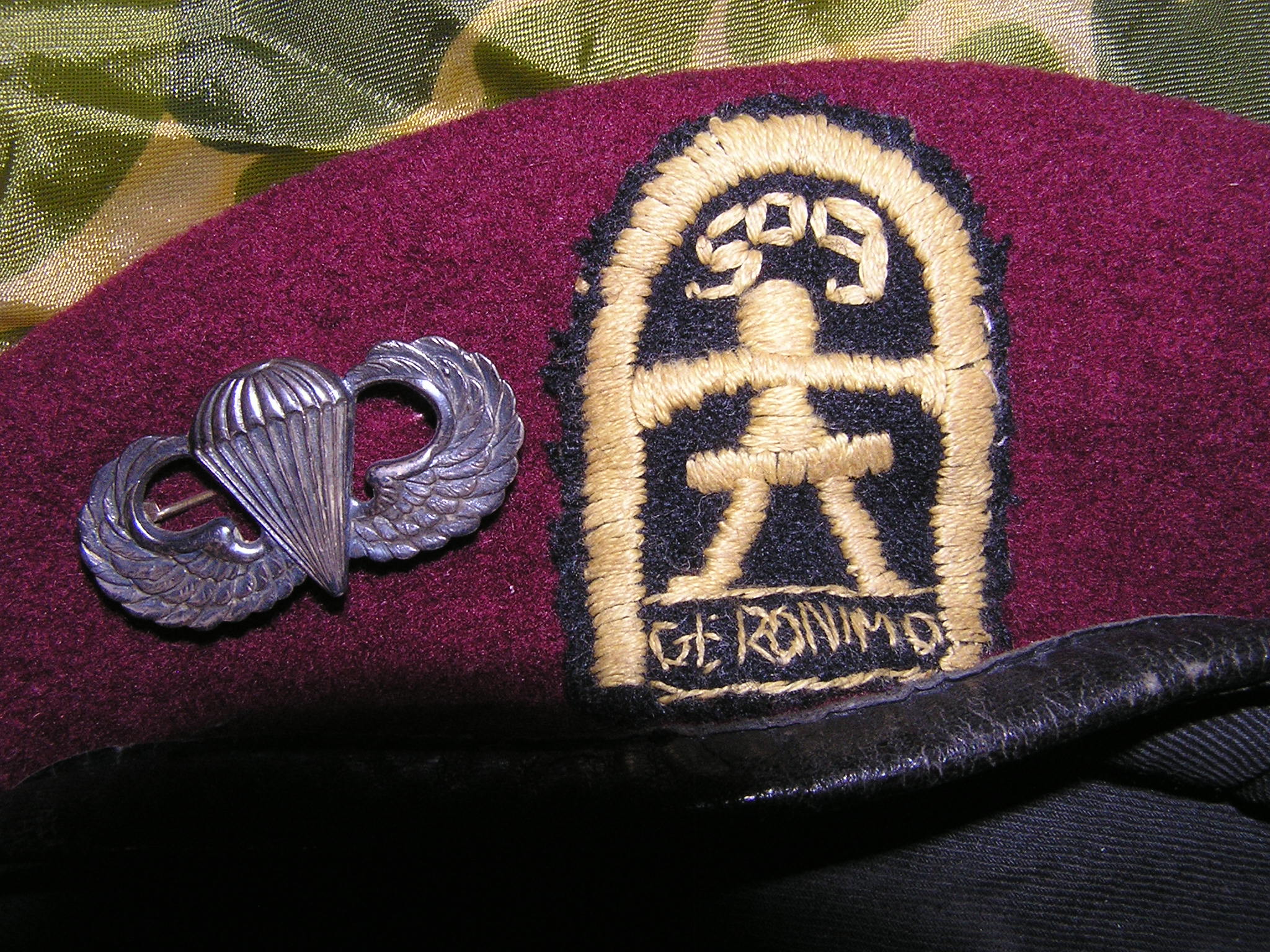 509th beret patch on lower right sleeve of Ike Jacket belonging to Stewart Barber, 509th PIB. To date I have seen more of the 509th beret patches worn on the lower sleeve than I have on a beret