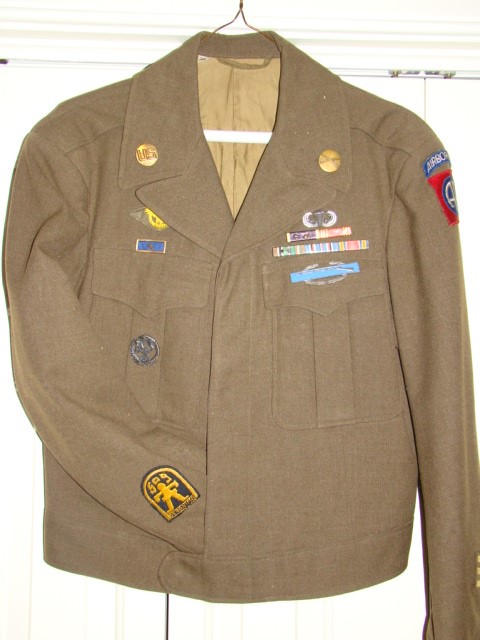 509th beret patch on lower right sleeve of Ike Jacket belonging to Stewart Barber, 509th PIB