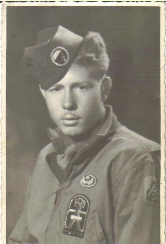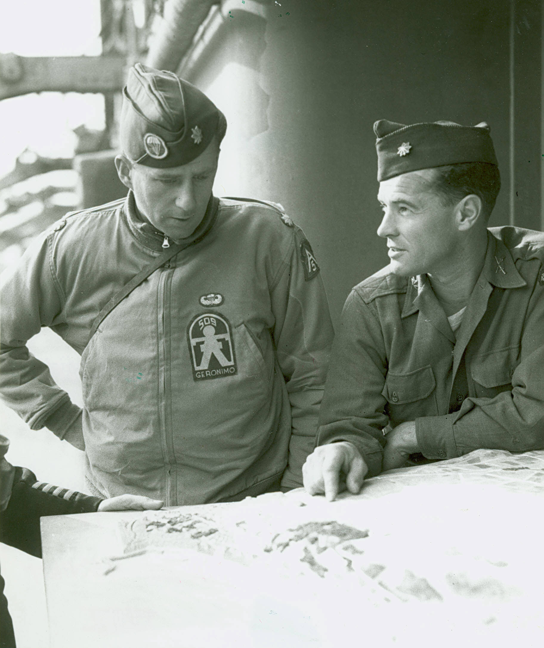 Lt Col. William Yarborough wearing cotton patch which appears to have been painted or printed. It is on a Winter Combat 'Tanker' Jacket.