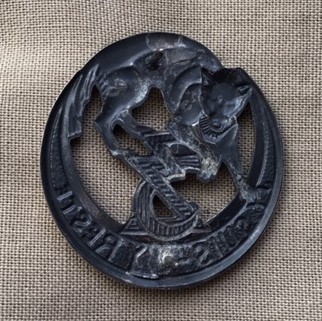 This is the modern stamped variation of the badge first authorized for wear during WWII. It is worn by Soldiers of the 509th today on the Class A uniform right breast pocket.