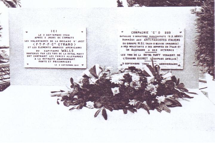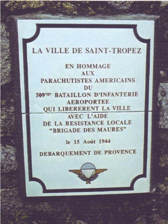 Honor and glory to the American, British, and French Marines who, on August 15,1944, participated in the landing in Provence. Grateful thanks from the city of Saint-Tropez to the allied combatants who contributed to our liberation